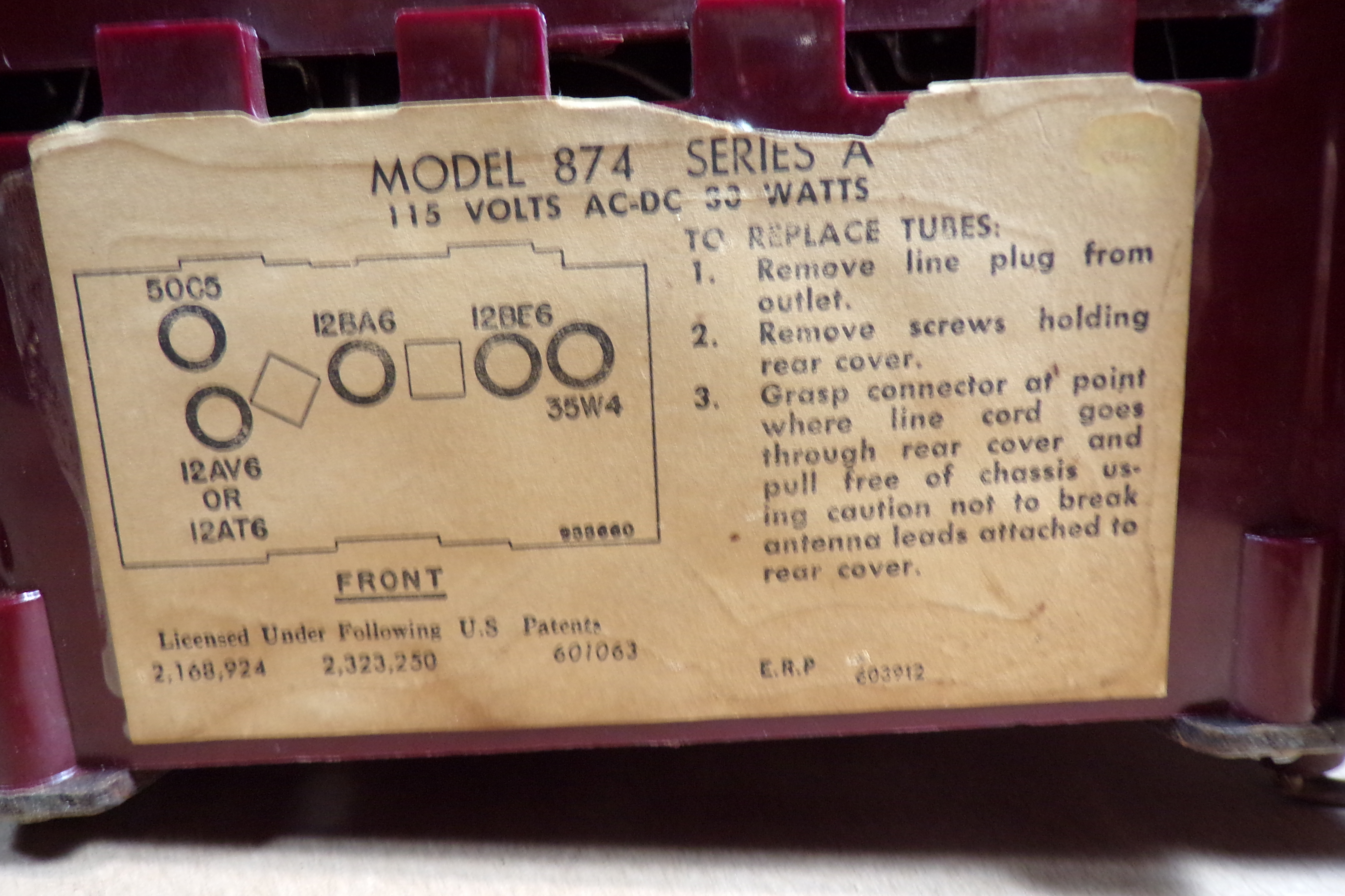 Emerson model 874 "series A" broken cabinet