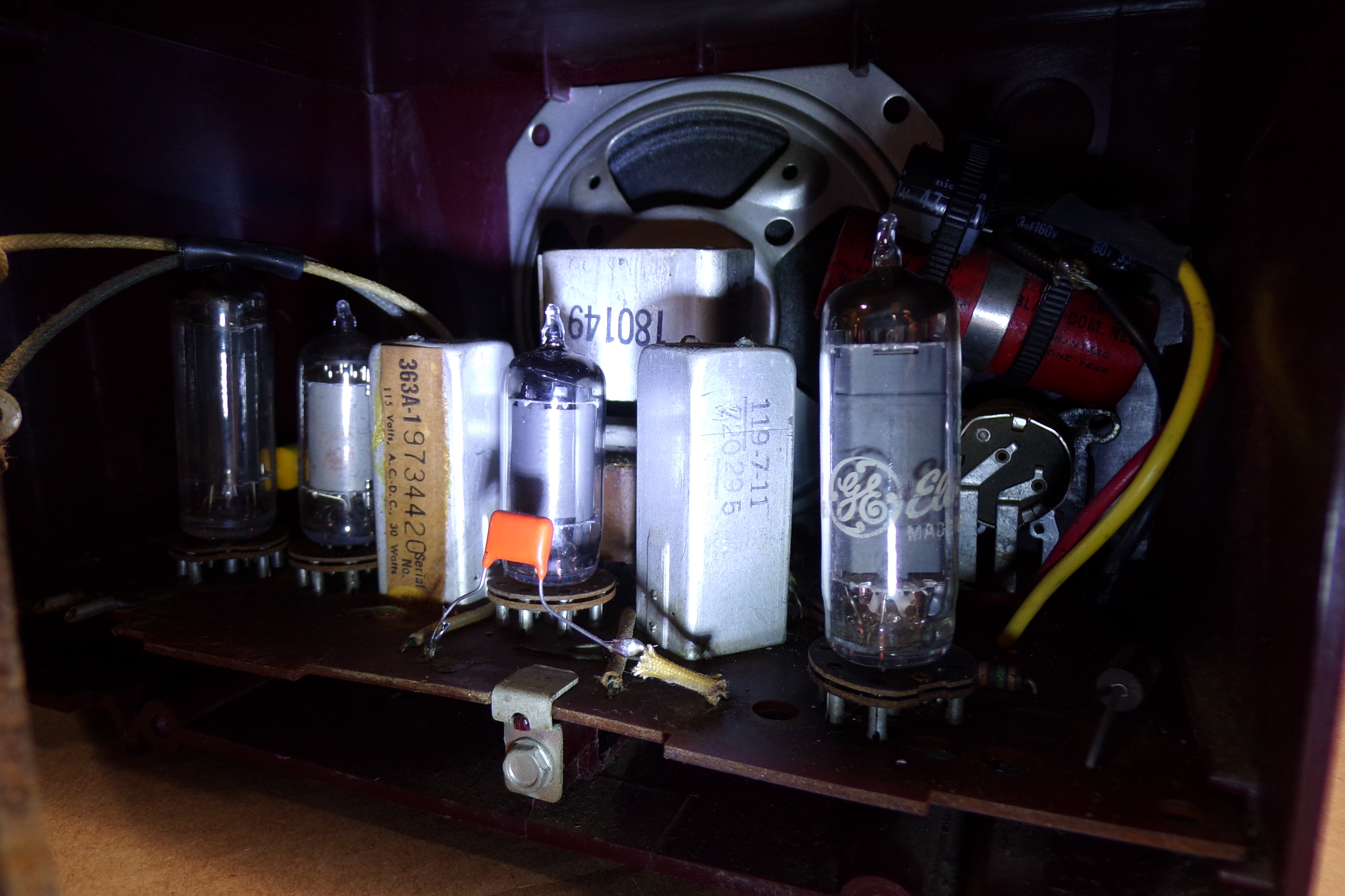 It looks like someone already replaced the filter capacitor, was that you? It is amazing, seen often with GE products, how cheap things can be made yet be great performers. Have fun with your newest project.