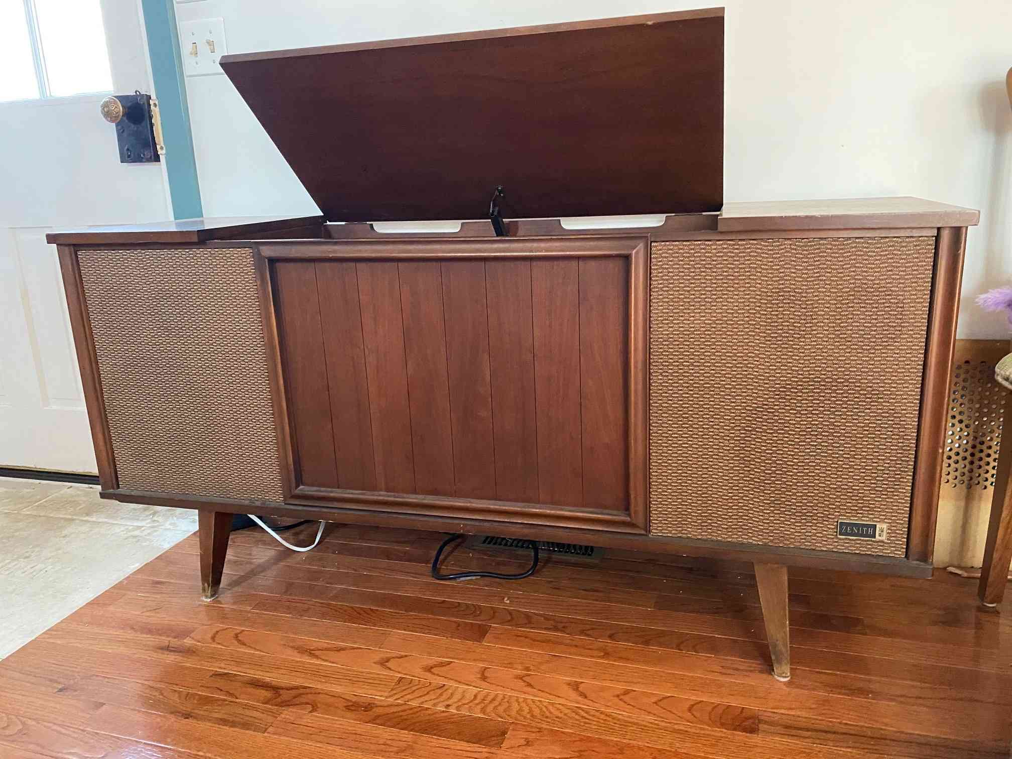 I found this at a Habitat ReStore 5 years ago, where it had a $50 tag on it. It was brought home where a basement flood nearly swallowed up the legs. While it was still otherwise in fine shape, the record player was not original Zenith-branded/Voice of Music-built "2g" changer but a later generic V-M 1200 series. I had a newer-style 1968 2g changer that I restored for it, looked even better than the more plain original. This alone was lots of work at the end but ultimately sold the console for me.