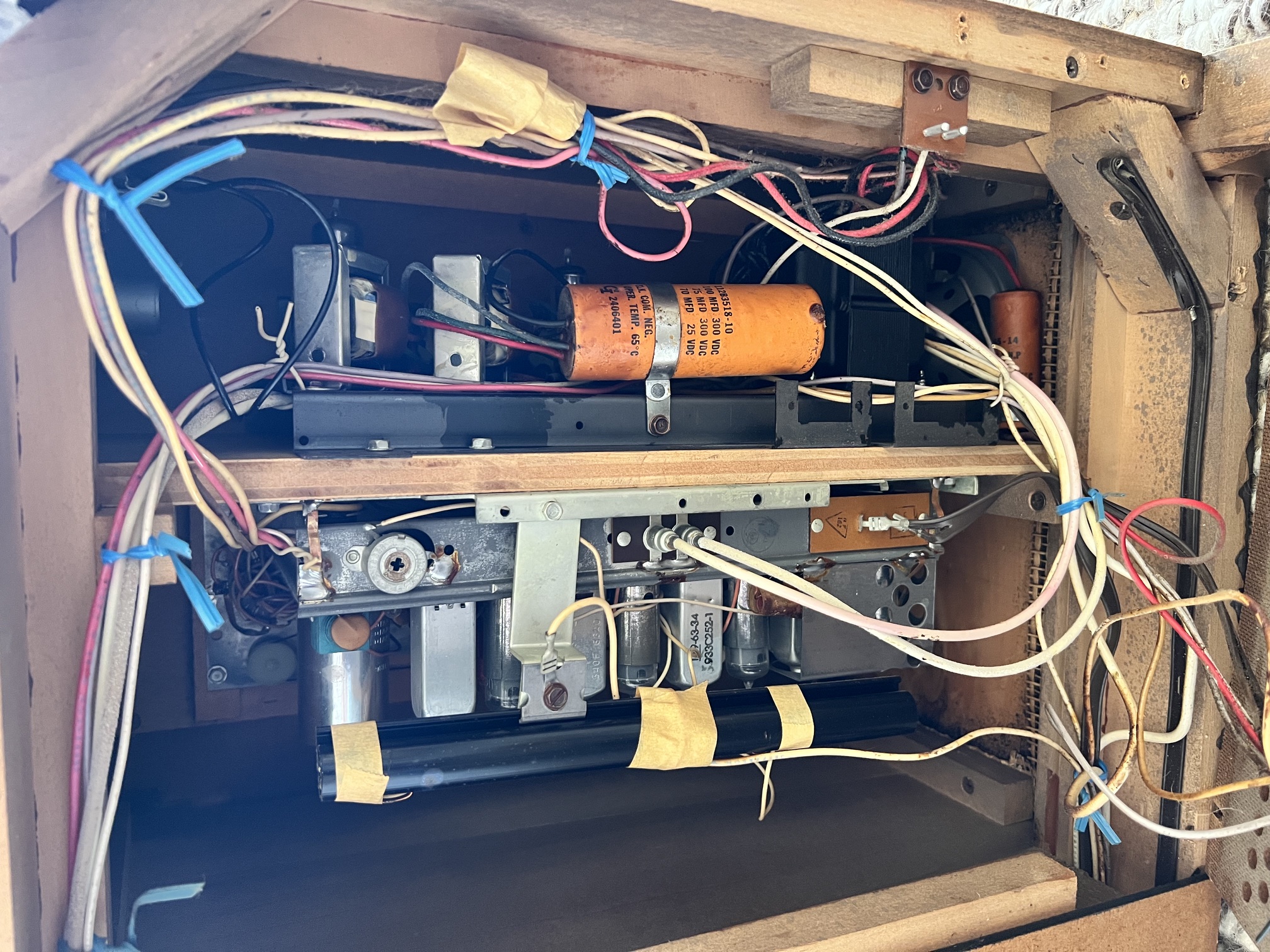 I'm looking for any insights folks might have regarding this model. When plugged in I hear a hum sound. Some of the tubes get warm, others dont. I so far replaced a 12AX7 and a 6AQ5A but that didn't seem to fix it. Before i wonder down the rabbit hole of vintage audio, i thought i'd understand what i'm up against from folks who have done this before. i'm commited a few hundred bucks on replacement tubes thus far. Trying to avoid a project int he living room with 5 and 7 years olds. Some foresight from you all would go a long long ways. A redit forum suggested it was the capacity that was likely bad and to swap that first. A parts diagram woudl be super helpful.